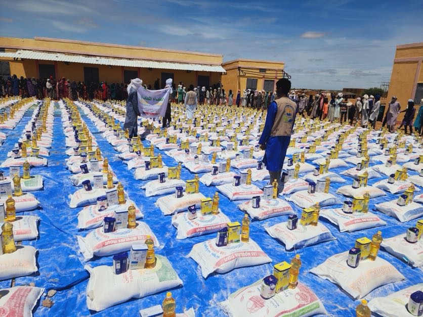 نموذج تنفيذ سلة غذائية أومشروع اطعام الطعام وهو عبارة عن مواد جافة (25كغ الأرز، 1ليتر من الزيت ، 1كيلو سكر، 1