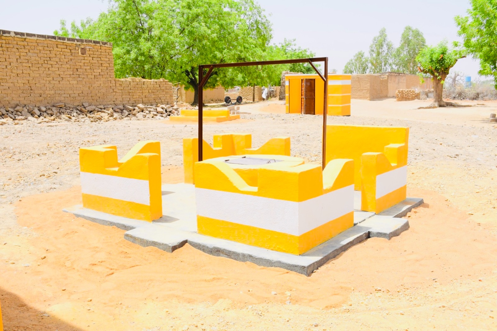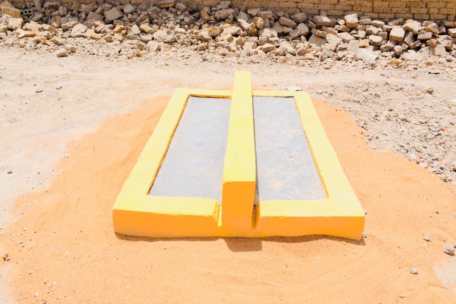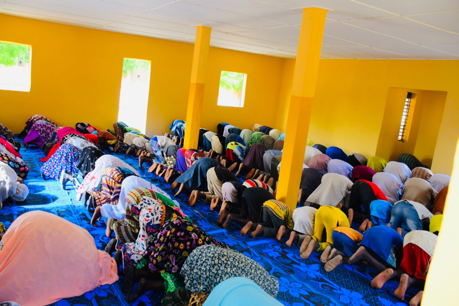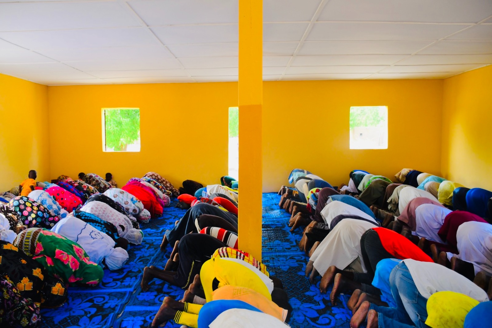 نموذج بناء مسجد 100 متر مربع وبئر سطحي بلو في مالي بالطوب والاسمنت والحديد والخرسانة المسلحة مسقف بالزنك والخشب العازل للحرارة، مع التجهيز ودورات مياه تسع لعدد 160 مصل بتكلفة 5000 د.ك